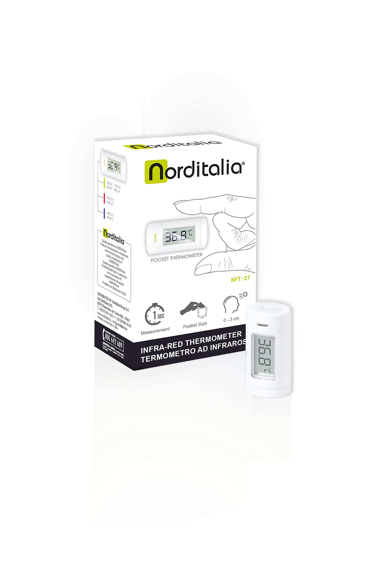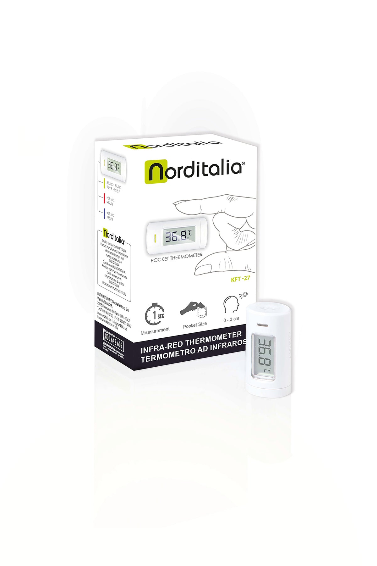 Forehead infrared thermometer for the measurement of body temperature. Its pocket size makes it easy to use and transport, making it suitable for use anywhere, even in unexpected situations outside home (at work, office, supermarket, restaurant, etc.).