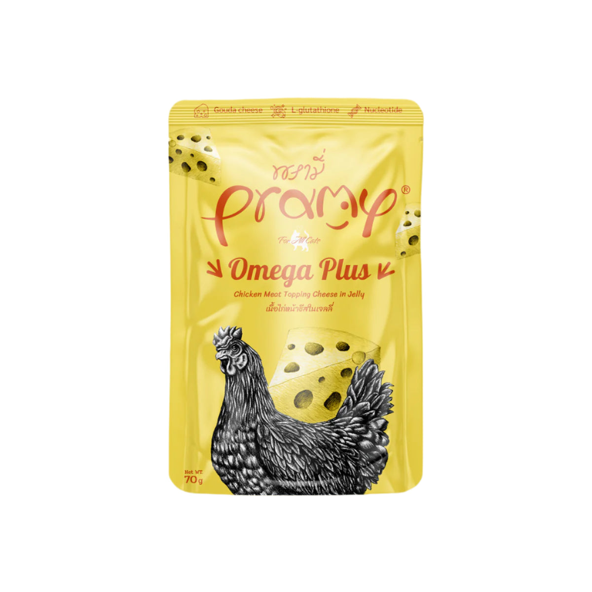 Pramy Chicken Meat Topping Cheese in Jelly Omega Plus Cat Pouch 70g * 6 Pouches