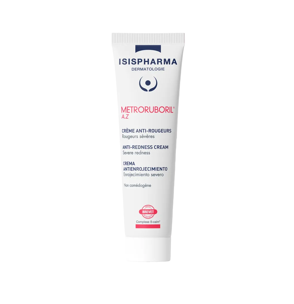 Metroruboril A.Z effectively diminishes the intensity of severe redness and reduces associated imperfections. Its concentrated formula combines 15% azelaic acid with ß-CALM complex to improve the overall appearance of your skin